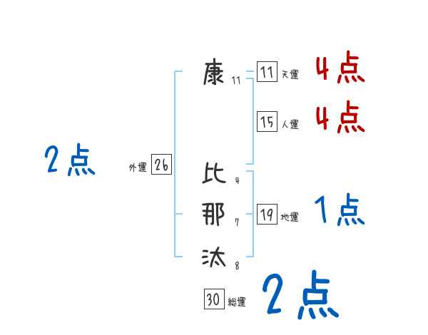 康比那汰さんの画数の鑑定結果