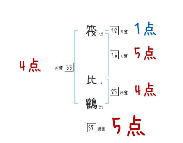 筏比鶴さんの画数の鑑定結果
