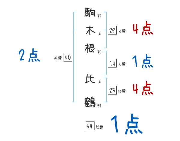 天運![]() | 駒木根比鶴さんの天運は29画の4つ星!完全主義で才能がある。厳格な心の持ち主。 家系が持つ宿命的な運勢を表します。祖先から受け継いだ苗字ですので自分の力が及びません。家柄を象徴します。 |