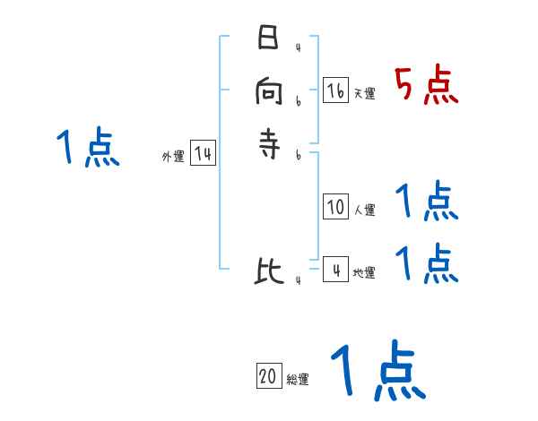 日向寺比さんの画数の鑑定結果