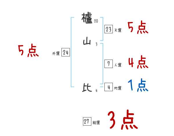 櫨山比さんの画数の鑑定結果