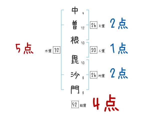 中曽根毘沙門さんの画数の鑑定結果