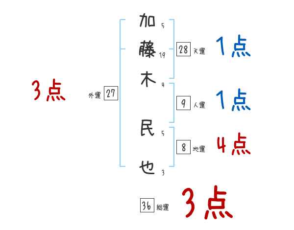 加藤木民也さんの画数の鑑定結果