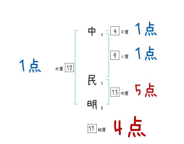 中民明さんの画数の鑑定結果