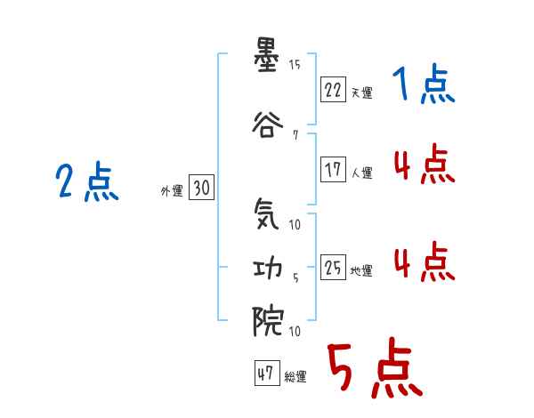 家系が持つ宿命的な運勢を表します。祖先から受け継いだ苗字ですので自分の力が及びません。家柄を象徴します。
