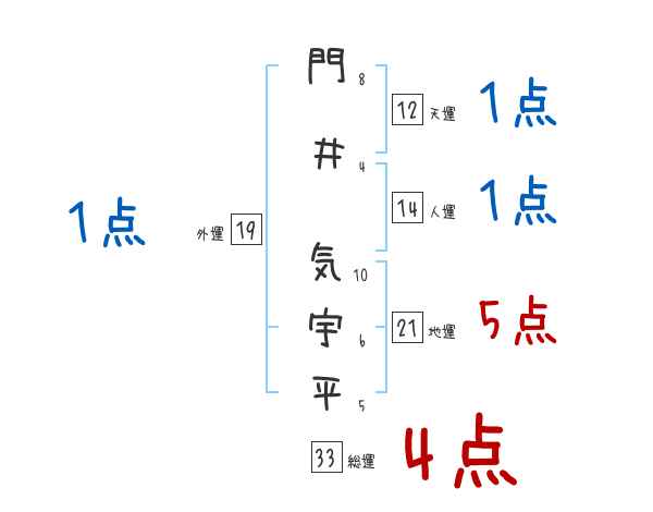 外運![]() | 門井気宇平さんの外運は19画の1つ星!優れた才能を持ちますが、協調性が足りないことも。周りの人と協力する事を意識しましょう。 生活面を象徴する運勢です。外部から受ける影響力を表し、結婚運、家庭運や職場、環境への順応性を表します。 |