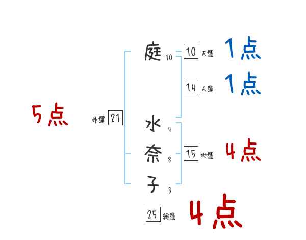 庭水奈子さんの画数の鑑定結果