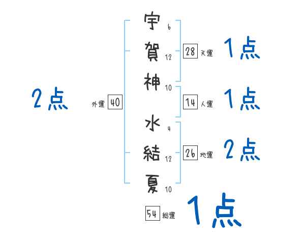 宇賀神水結夏さんの画数の鑑定結果
