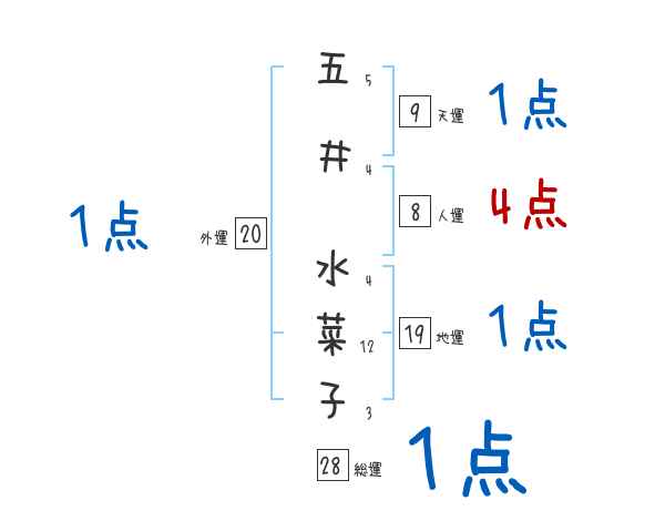 総運![]() | 五井水菜子さんの総運は28画の1つ星!家庭環境に注意。スポーツで活躍できる能力があるかも。 あなたの人生を表す1番重要な運勢です。生涯を通じて影響する総合運となり、主に50歳以降の晩年期に影響を及ぼします。 |