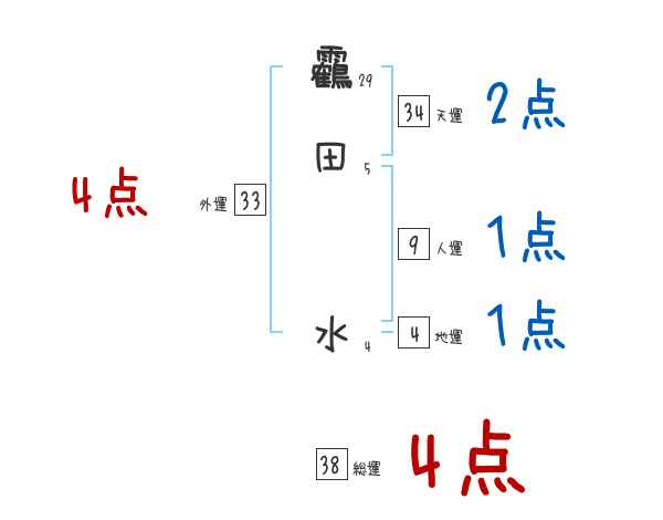 靏田水さんの画数の鑑定結果