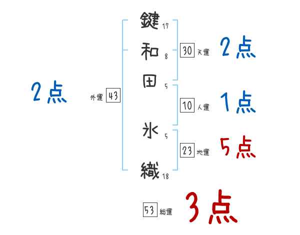 鍵和田氷織さんの画数の鑑定結果