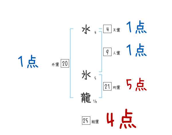 水氷龍さんの画数の鑑定結果