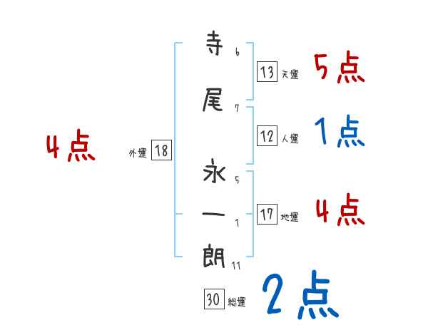 総運![]() | 寺尾永一朗さんの総運は30画の2つ星!浮き沈みの激しさに注意しましょう。 あなたの人生を表す1番重要な運勢です。生涯を通じて影響する総合運となり、主に50歳以降の晩年期に影響を及ぼします。 |