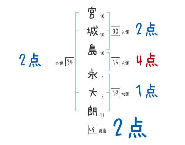 宮城島永大朗さんの画数の鑑定結果