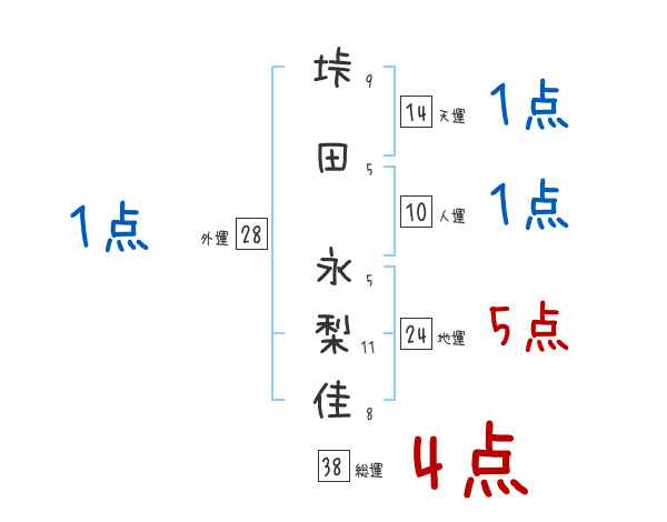外運![]() | 垰田永梨佳さんの外運は28画の1つ星!家庭環境に注意。スポーツで活躍できる能力があるかも。 生活面を象徴する運勢です。外部から受ける影響力を表し、結婚運、家庭運や職場、環境への順応性を表します。 |