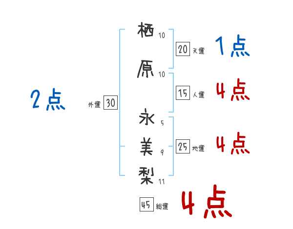 外運![]() | 栖原永美梨さんの外運は30画の2つ星!浮き沈みの激しさに注意しましょう。 生活面を象徴する運勢です。外部から受ける影響力を表し、結婚運、家庭運や職場、環境への順応性を表します。 |