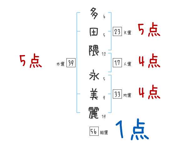 多田隈永美麗さんの画数の鑑定結果