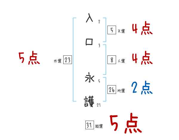 入口永護さんの画数の鑑定結果
