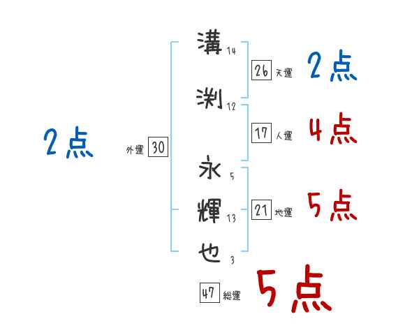 溝渕永輝也さんの画数の鑑定結果