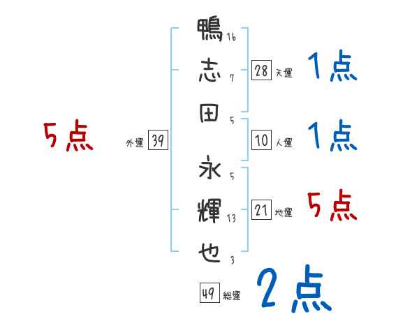 鴨志田永輝也さんの画数の鑑定結果