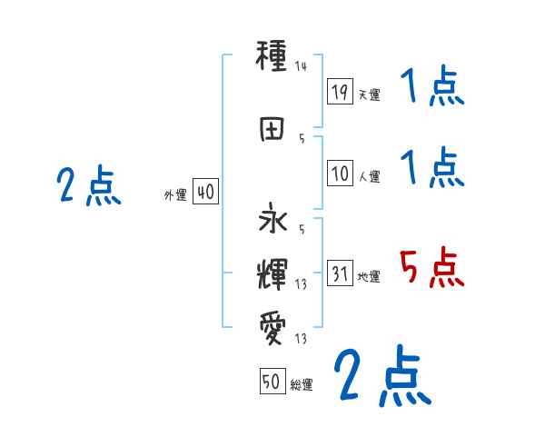 種田永輝愛さんの画数の鑑定結果