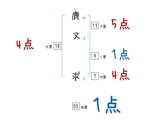 鹿又求さんの画数の鑑定結果