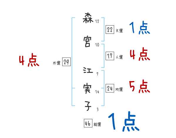 森宮江実子さんの画数の鑑定結果