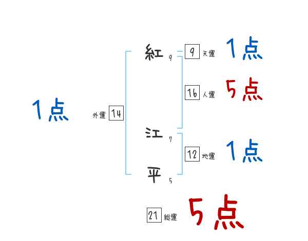 紅江平さんの画数の鑑定結果