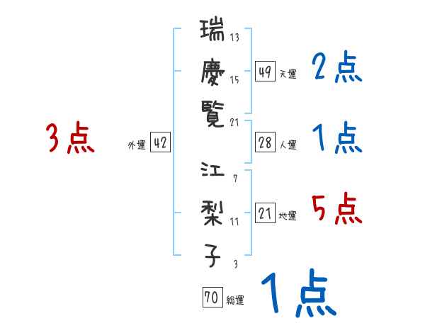 瑞慶覧江梨子さんの画数の鑑定結果