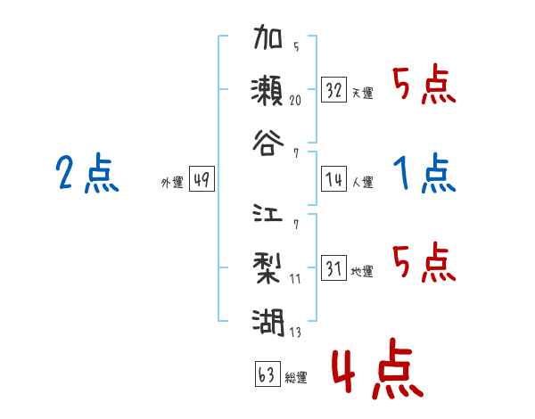 加瀬谷江梨湖さんの画数の鑑定結果