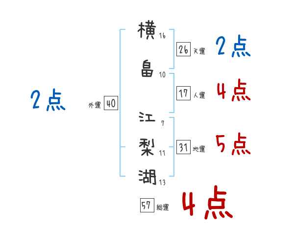 外運![]() | 横畠江梨湖さんの外運は40画の2つ星!自信過剰で物事に固執するためトラブルに注意。 生活面を象徴する運勢です。外部から受ける影響力を表し、結婚運、家庭運や職場、環境への順応性を表します。 |