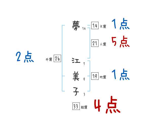 外運![]() | 夢江美子さんの外運は26画の2つ星!波瀾万丈かも。信頼できる人を大事にしましょう。 生活面を象徴する運勢です。外部から受ける影響力を表し、結婚運、家庭運や職場、環境への順応性を表します。 |