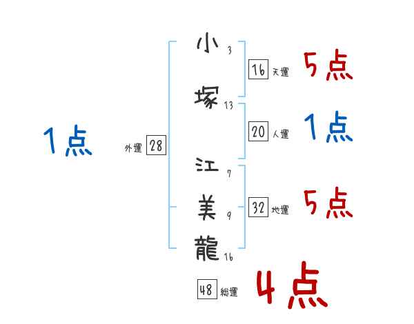 小塚江美龍さんの画数の鑑定結果