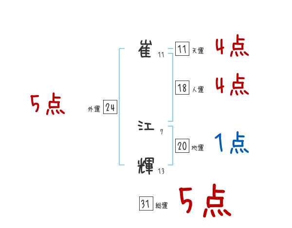 崔江輝さんの画数の鑑定結果
