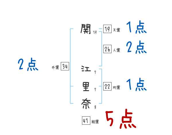 天運![]() | 関江里奈さんの天運は19画の1つ星!優れた才能を持ちますが、協調性が足りないことも。周りの人と協力する事を意識しましょう。 家系が持つ宿命的な運勢を表します。祖先から受け継いだ苗字ですので自分の力が及びません。家柄を象徴します。 |