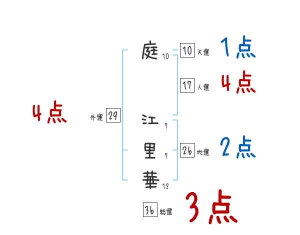 庭江里華さんの画数の鑑定結果