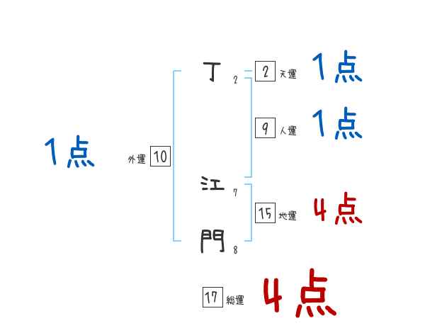 天運![]() | 丁江門さんの天運は2画の1つ星!優しいですが積極性や意思の強さに欠ける傾向があります。家庭環境の乱れに注意しましょう。 家系が持つ宿命的な運勢を表します。祖先から受け継いだ苗字ですので自分の力が及びません。家柄を象徴します。 |