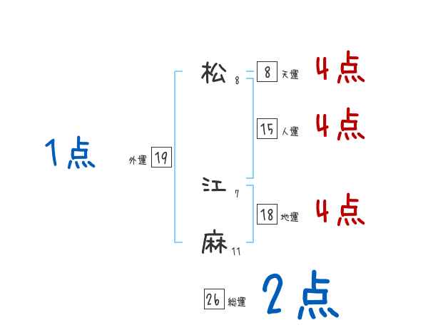 天運![]() | 松江麻さんの天運は8画の4つ星!勤勉家。根気強く努力し成功する。忍耐力がある。 家系が持つ宿命的な運勢を表します。祖先から受け継いだ苗字ですので自分の力が及びません。家柄を象徴します。 |