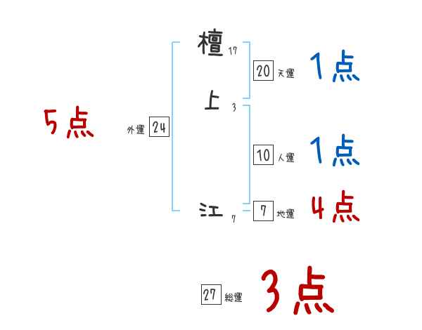 檀上江さんの画数の鑑定結果