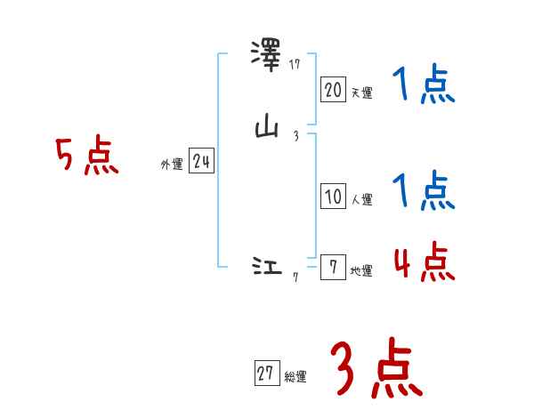 澤山江さんの画数の鑑定結果