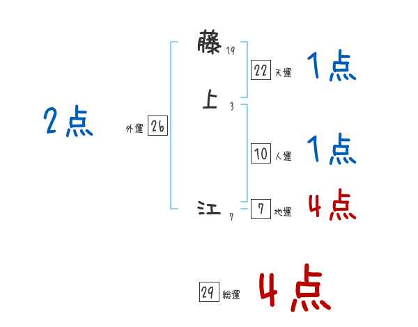 地運![]() | 藤上江さんの地運は7画の4つ星!強い意志や信念を持ち独立心が強い。自立する。 個性を表す基礎的な運勢です。性格形成や対人関係、行動力など家庭環境に影響されます。主に誕生してから20歳くらいまでの若年期の運勢を表します。 |