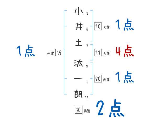 小井土汰一朗さんの画数の鑑定結果