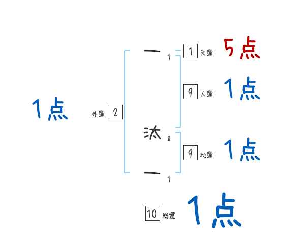 天運![]() | 一汰一さんの天運は1画の5つ星!行動力、指導力があり出世し繁栄する。幸運に恵まれる。 家系が持つ宿命的な運勢を表します。祖先から受け継いだ苗字ですので自分の力が及びません。家柄を象徴します。 |