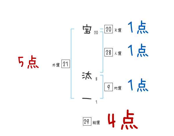 宝汰一さんの画数の鑑定結果