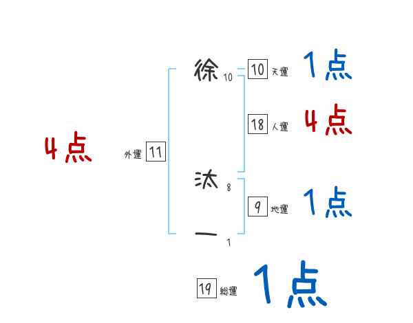 徐汰一さんの画数の鑑定結果