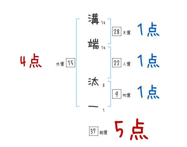 天運![]() | 溝端汰一さんの天運は28画の1つ星!家庭環境に注意。スポーツで活躍できる能力があるかも。 家系が持つ宿命的な運勢を表します。祖先から受け継いだ苗字ですので自分の力が及びません。家柄を象徴します。 |