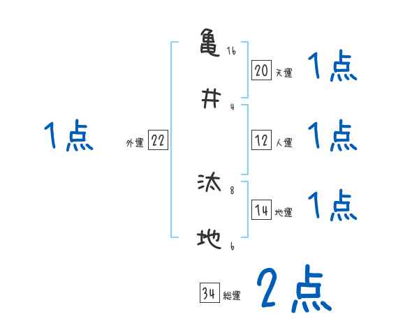 亀井汰地さんの画数の鑑定結果