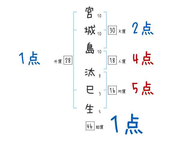 地運![]() | 宮城島汰巳生さんの地運は16画の5つ星!人望が厚く大きく発展する。逆転成功が見える。 個性を表す基礎的な運勢です。性格形成や対人関係、行動力など家庭環境に影響されます。主に誕生してから20歳くらいまでの若年期の運勢を表します。 |