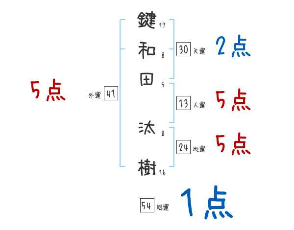 鍵和田汰樹さんの画数の鑑定結果