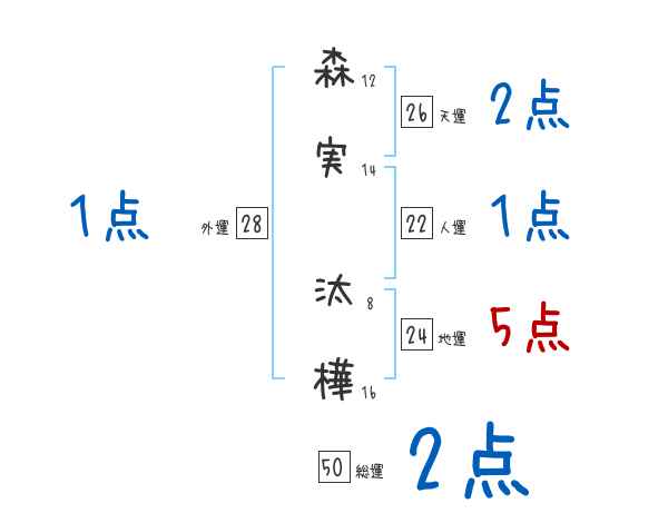 外運![]() | 森実汰樺さんの外運は28画の1つ星!家庭環境に注意。スポーツで活躍できる能力があるかも。 生活面を象徴する運勢です。外部から受ける影響力を表し、結婚運、家庭運や職場、環境への順応性を表します。 |